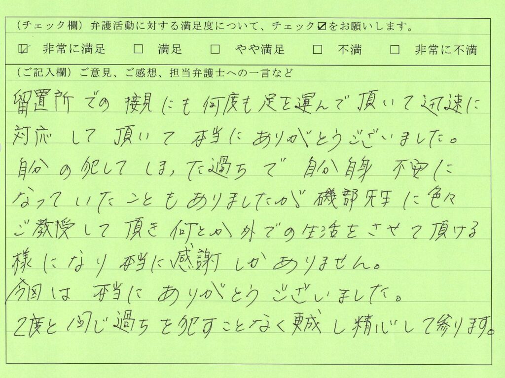 【お客様の声】万引きによる窃盗事件で不起訴処分獲得